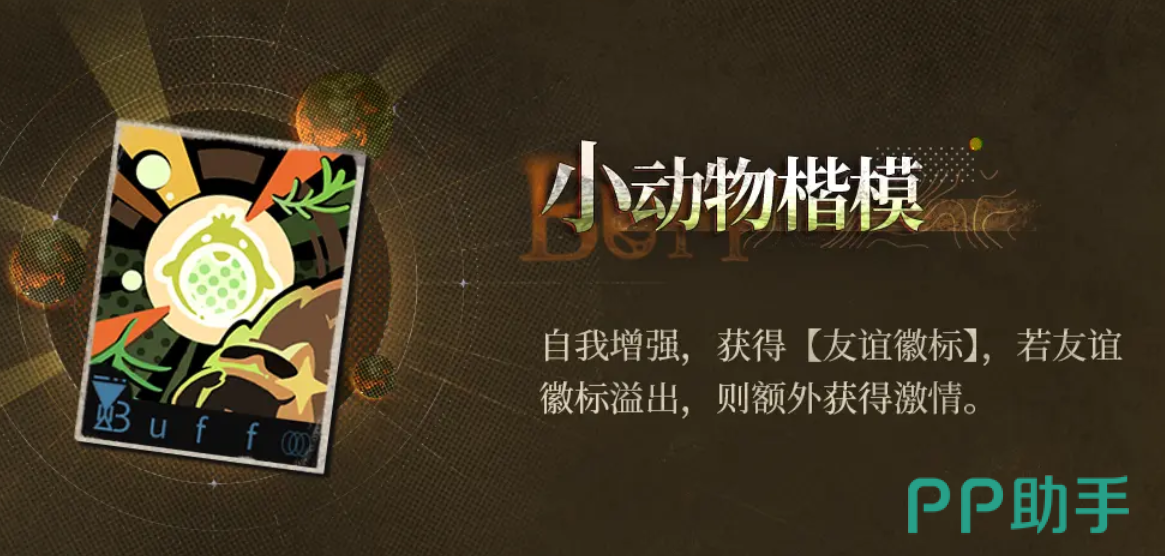 嚼嚼松果在游戏当中并不属于人类,而是属于动物类的化身,它的技能都围绕着友谊进行展开,可以通过积累友谊徽标的方式,来强化自身技能效果。
