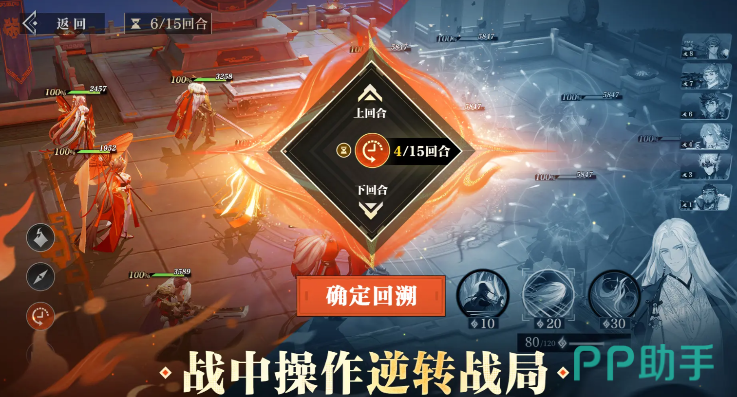 游戏在传统回合制的战斗上加入了诸多创新,关卡里不仅会有砸下来的屏风、灼烧场地等不同机关,还加了控制行动条以及回溯等全新机制,这使得玩家不仅要考虑好阵容和技能释放顺序,还要留意关卡的不同和机制的运用,每一位玩家的策略和决断都能在一场场战斗中得到发挥。
