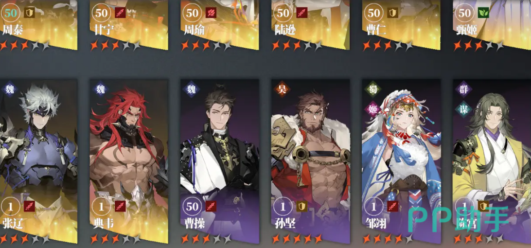 继承了“三军无废将”的核心设计理念,所有武将均可培养到顶级品质(无双),并且新增了多方向的转职系统。玩家可以在养成过程中为武将切换职业定位,例如曹操既可以培养为全队支援的“领袖”,也能转职为对敌人造成大量连斩伤害的“收割者”。这使得每个武将都拥有独特的玩法和定位,减少了角色间的替代性。角色之间还有缘分系统,即便是历史宿敌也能通过羁绊产生“奇妙反应”,从而玩家可以自由搭配培养出属于自己的战斗流派。