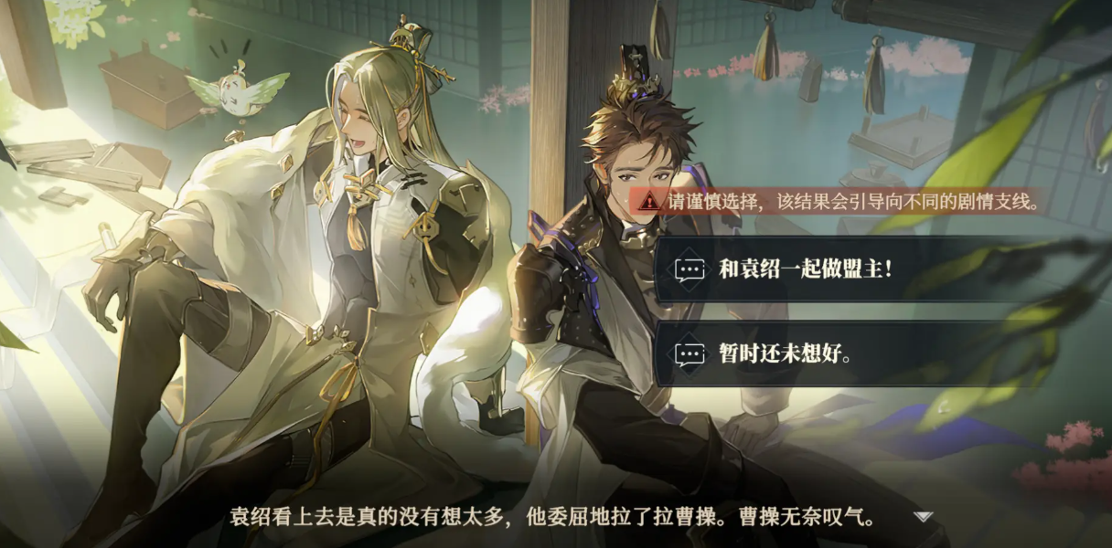 首个主线章节是“曹操传”,以曹操为主视角,从其青年时期与袁绍的深厚情谊讲起,细致刻画了两人关系从并肩战斗到势同水火的变化过程,游戏还在主线之外加入了多个支线和番外剧情,比如四世三公袁家三兄弟、蹇硕与张春华等角色的独立故事。