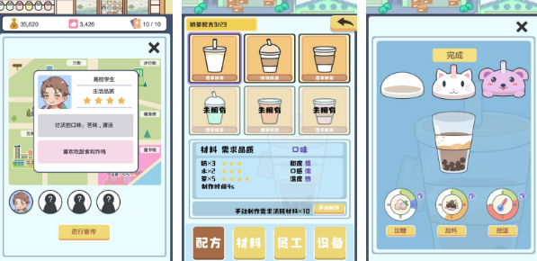 这款超级治愈的趣味手游,让玩家作为一名店长制作和销售风味独特的奶茶。系统界面采用清新脱俗的二次元风,搭配舒适悦耳的音乐,让玩家体验到宁静的经营状态。每位顾客的挑剔口味都会带来不菲的收益,玩家需要按照客户需求精心调制,获取到的收益也会逐步解锁更多的配方。通过招聘员工升级设备等操作,会极大减少工作量,装饰更加美丽的店铺也会让顾客络绎不绝。