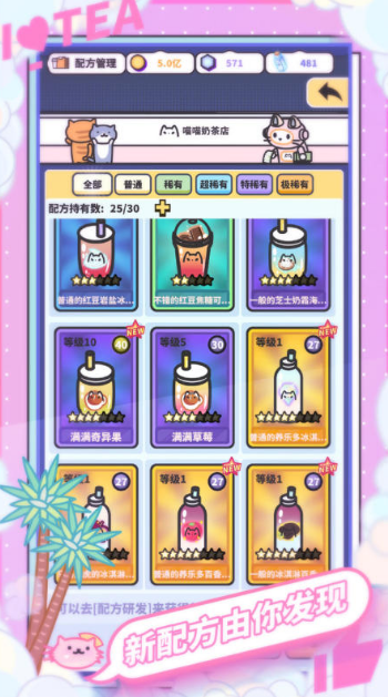 本游戏把经营背景放置在即将倒闭的奶茶店里,玩家需要通过各种经营策略让店铺重新焕发生机,打造世界第一网红奶茶店。系统界面采用日式二次元风,玩家通过制造网红话题提高店铺流量,也能招募超高人气的网红小猫作为辅助。游戏操作包括研制最新配方和收集图鉴等模式,更要装修豪华的店铺吸引更多顾客,玩法简单易懂,极其适合休闲玩家。