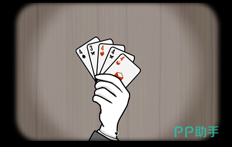 寻找“异类”纸牌这个关卡很多的伙伴都会被难住,其实在最开始需要点击兔子的左手,从而就会有五张卡牌变出来,仔细观察这几张纸牌,分别是黑桃A、梅花3、红心7、红心5,从中找出那张“不合群”的牌,这需要提醒大家的是一定要对纸牌的花色和数字有一定的敏感度哦。