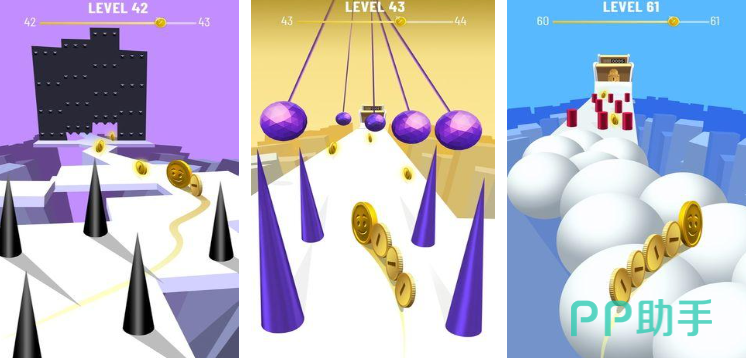 在硬币向前冲游戏中,障碍物充满动态变化,尖刺阵列会周期性地收缩与扩张,玩家要在尖刺收缩的瞬间,操控硬币安全通过,消失的道路会提前闪烁预警,玩家需根据闪烁节奏,规划好硬币的行进路线,在道路消失前快速通过,移动的旋转门更是考验玩家对时机的把握,必须找准门打开的瞬间,让硬币顺利穿过,这些动态变化增加了游戏的紧张感。