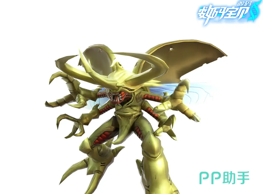 它的全身都散发着耀眼的金色光芒,拥有者庞大的角和钳,背部的翅膀可以帮助其在天空中飞向,它的必杀技会释放出威力十分巨大的炮弹,成功击中敌人后不仅会造成真伤,还能驱散掉敌人的多个增益,并且有一定概率附带上麻痹效果,基本上只要成功命中,对接下来的战局改变是非常大的,它的“静电场”会让全部的敌人进入到缴械状态,该状态会使得他们无法再本回合行动。