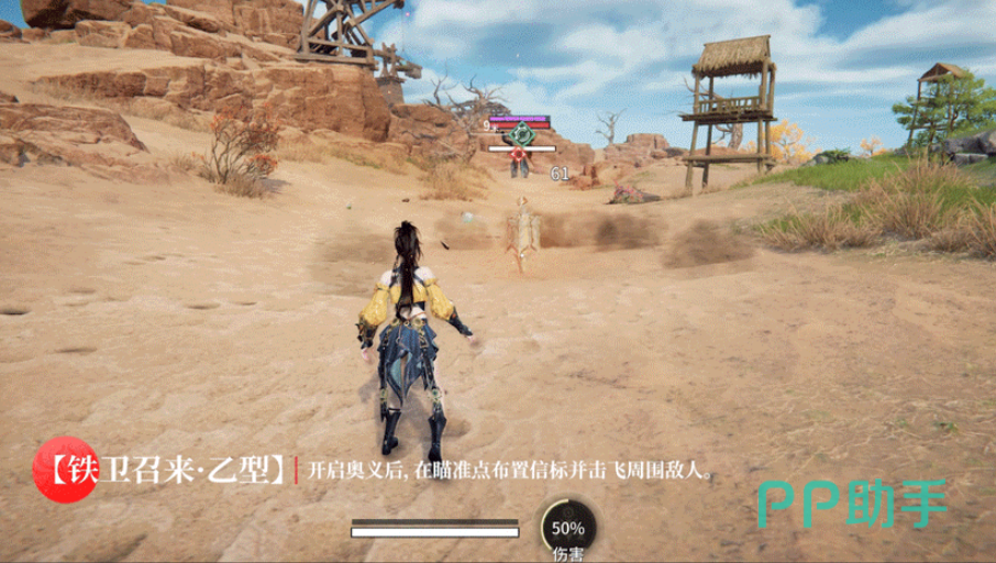 她的奥义二会打出信号枪,在瞄准点布置信标并击飞敌人,己方交互后可驾驶铁卫,此招与奥义一不同地方在于,召唤来的铁卫持续时间会较短,最后沈妙的奥义连携是和胡为,在其铁卫存在期间,胡为在奥义状态下用金霸体跃击时,将会额外召唤炮弹攻击敌方。