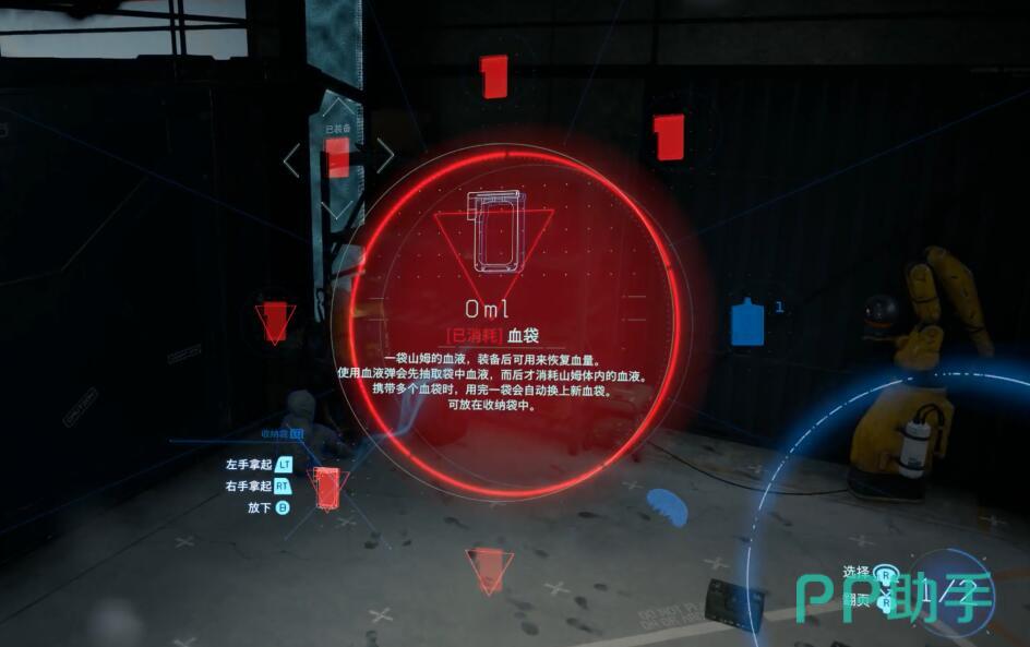使用的话很简单,打开装备轮盘(默认长按L1),选择血袋后按确认键(○)使用。战斗中建议先寻找掩体,避免在敌人攻击时被打断。血袋的恢复量分为小、中、大三种,小型血袋恢复约30%血量,大型可回满。若血量低于50%,优先使用中型或大型血袋,避免浪费小型血袋的恢复效率。
