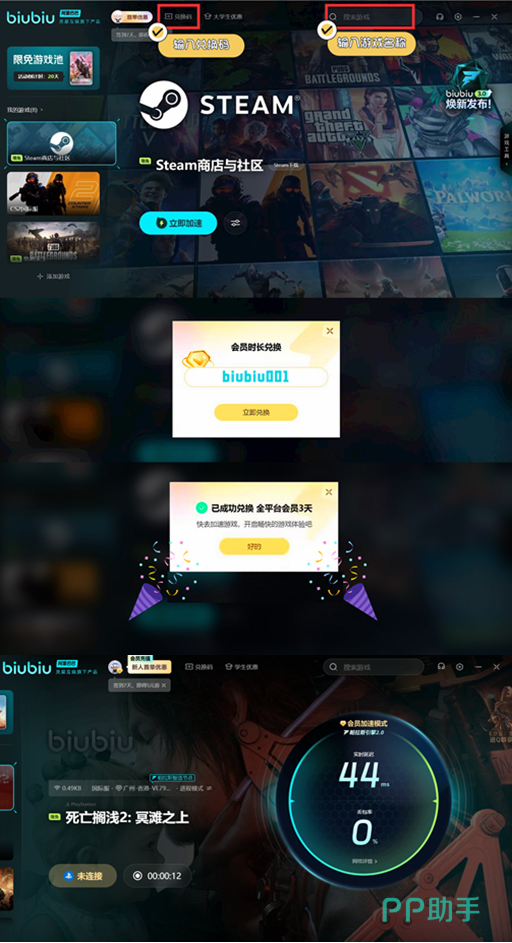 多人模式下,玩家可通过共享武器蓝图与战场标记协同作战。推荐使用加速器biubiu为我们的联机网络保驾护航。而且输入biubiu001兑换72小时免费加速时间,新人额外能再拿24小时,总计最高的96小时免费加速时间让你更顺畅的进行对战。