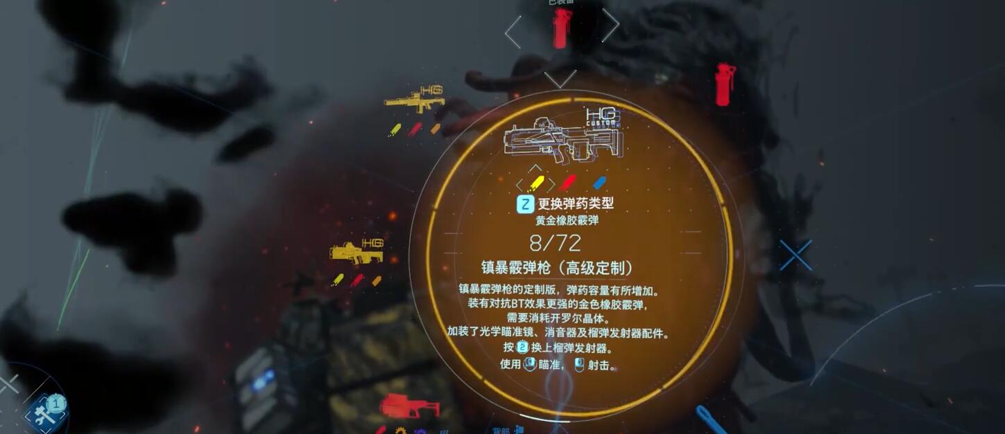 初期仅能获得基础手枪和绳索,随着连接更多据点,工程师据点会解锁武器制作功能。高阶武器如四联装火箭发射器需要完成特定订单才能获取蓝图等等。所有武器均可通过工作台安装配件,消音器能降低开枪吸引BT的概率,而扩容弹匣则提升持续作战能力。