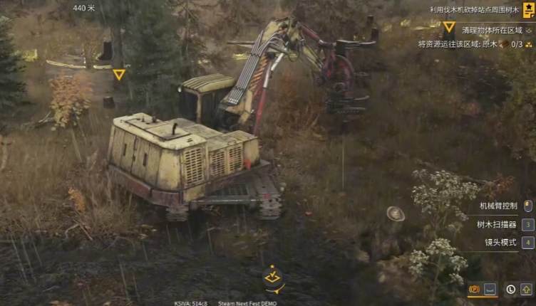 在转向时,要注意转向幅度的控制,在较为宽阔、平坦的区域,伐木场的开阔地带可适当加大转向幅度,快速调整伐木机朝向树木的位置,提高移动效率,但当在狭窄空间,林间小道或者被废墟环绕的区域,就要采用小幅度转向操作,因为狭窄空间限制较多,大幅度转向可能导致伐木机碰撞到周围的树木、岩石或其他障碍物,不仅会损坏车辆,还可能阻碍后续的作业进程,此时通过多次小幅度的转向操作,缓慢调整伐木机方向,能确保安全通过狭窄路段并精准定位到目标树木。