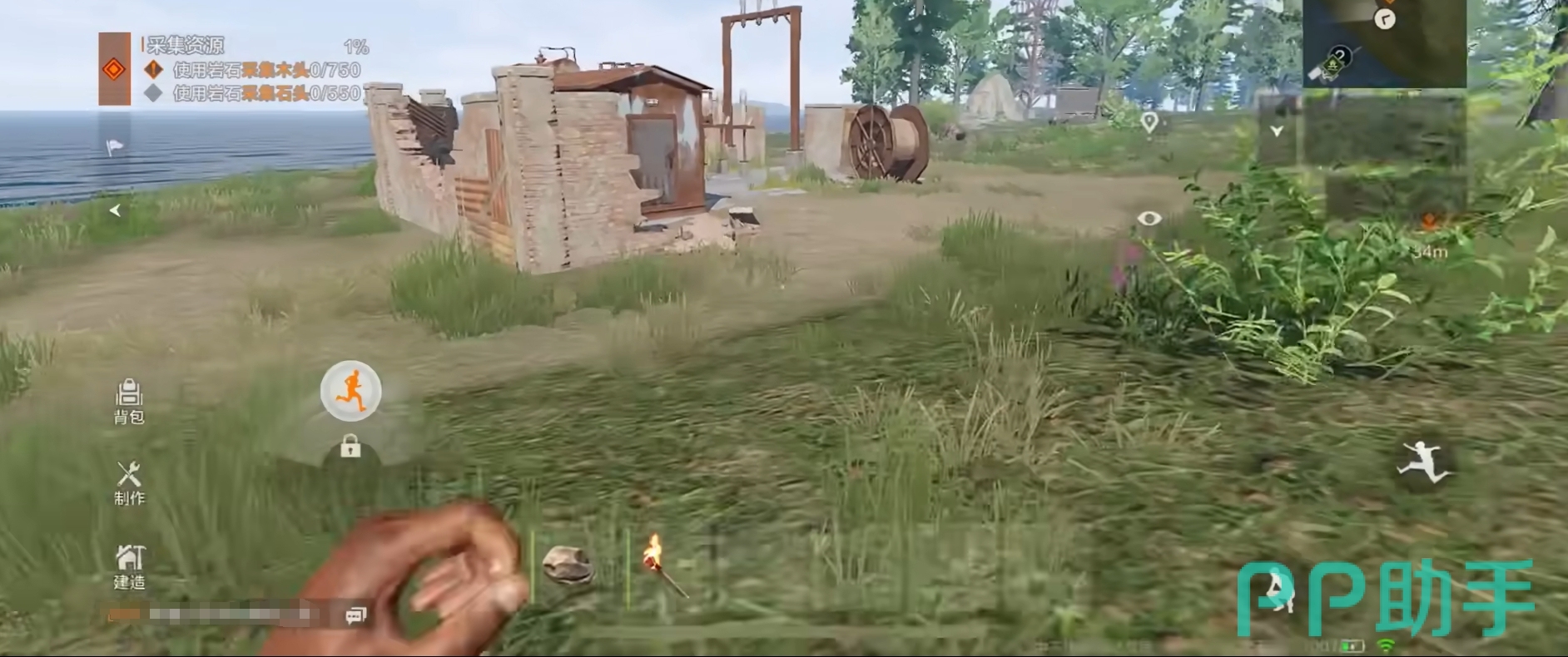 既然成为了独狼,自然不能按传统的发展流来游玩失控进化,毕竟一个人收集材料的速度远远比不上多人一起收集。因此,玩家在进到地图后,只要物资足够建出一个2*1的小家,且还能制作出一把弓箭和50左右的箭矢,就可停止收集物资,转而前往各资源点蹲人,通过击败其它玩家来获取他们身上的物资。