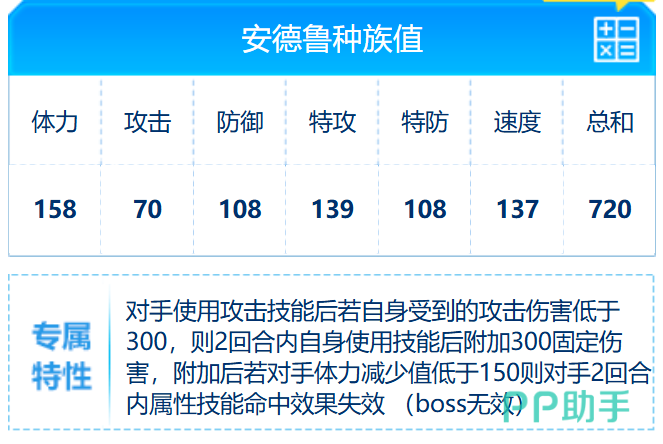 从安德鲁的属性来看,不难发现虽然它的攻击力很低,可是它的特攻能力却极为强大,在加上它本身又是飞行神秘系精灵,这也让它在战斗中可以占据更多的游戏。