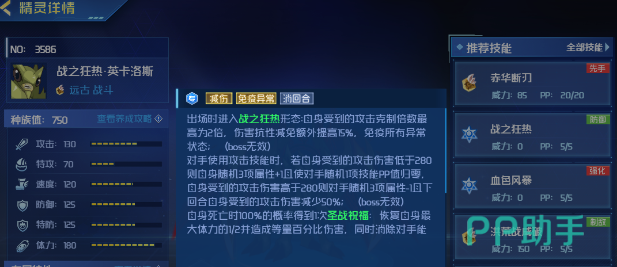 从属性方面来看还是比较强势,出场马上就会进入到狂热的状态,可以直接减免伤害到1/2,另外伤害抗性还会额外的提升15%,具有免疫异常状态的效果。