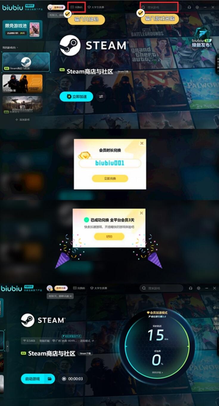 但是稳定的网络连接对弹反判定至关重要,而biubiu加速器可优化延迟导致的输入误差,现在大家使用biubiu加速器的兑换码biubiu001还能领取72小时的免费加速时间。新人注册额外领取24小时的免费加速时间。这样最多就有96小时的免费加速时间了,确保高难度战斗中的操作精准性。