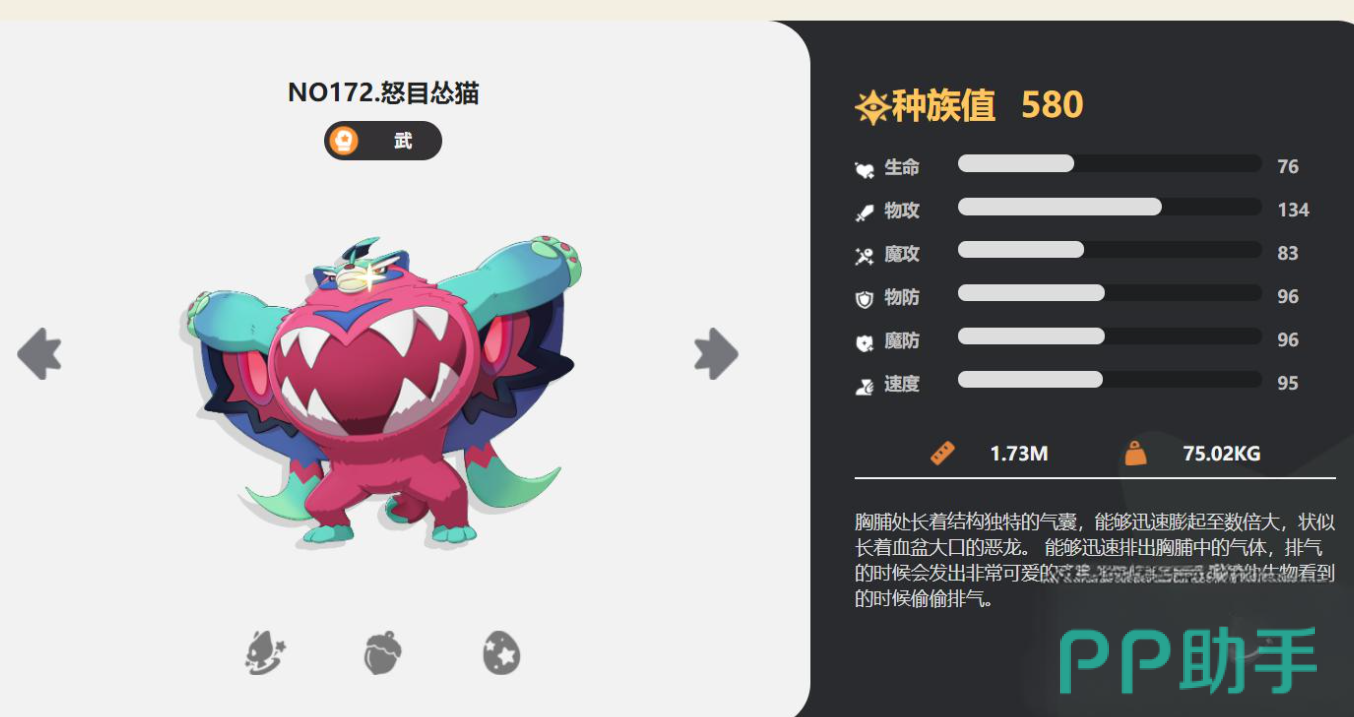 每一只精灵只要性格选择正确,那精灵的能力就能得到提升,最适合怒目怂猫的性格是开朗性格,这个性格可以让怒目怂猫的速度得到快速提升,使他在战斗中能掌握战场节奏。若是想要提高怒目怂猫的攻击力的话,建议选择固执性格,这个性格主要能提高怒目怂猫的物理攻击。