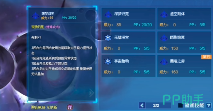 尤纳斯的设计并非强调单回合爆发,而是通过多段式控制与持续性干扰,削弱对手资源并创造反制窗口。尤纳斯的基础攻击技能如“黑射线”“穿刺”“毁灭打击”“魔网”等,虽然威力中等,但多数附带能力削弱效果,如降低防御、速度等级,具备持续瓦解对方强化结构的作用。