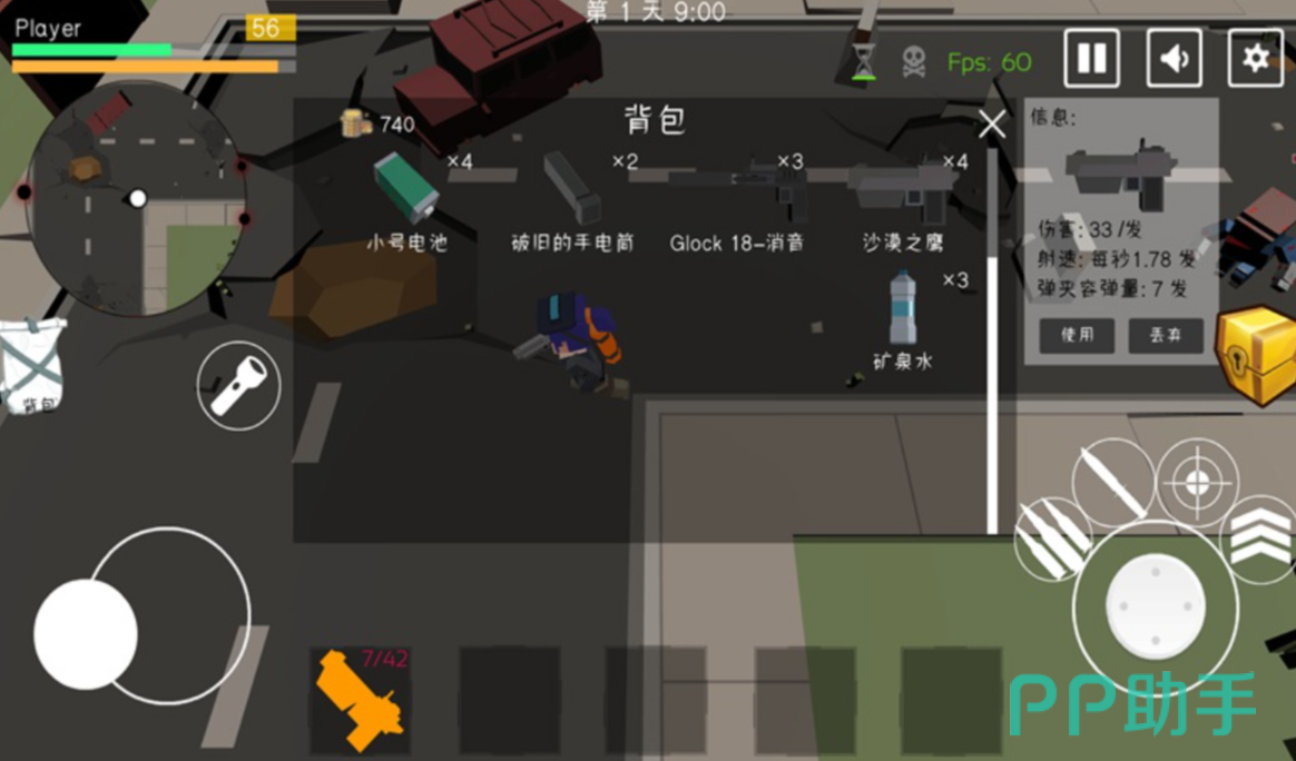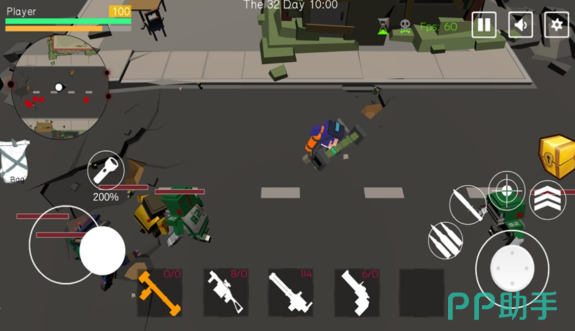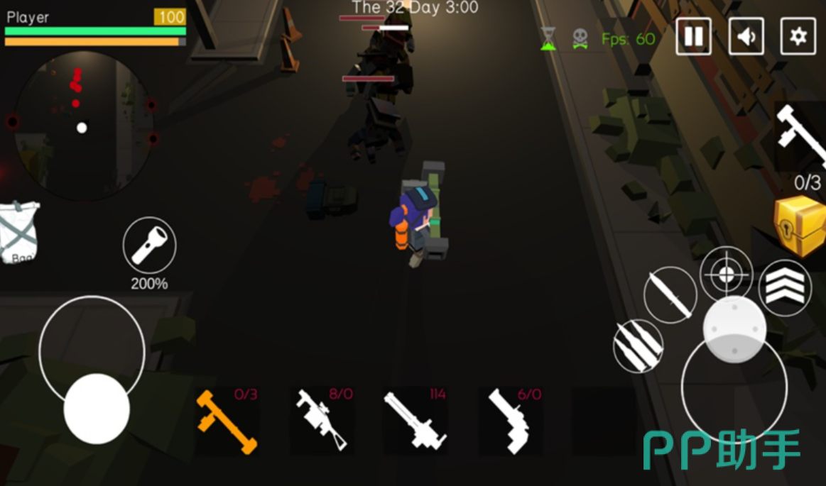 于游戏前期,玩家只具备有近战的武器装备,固然,玩家需要适当地和丧尸保持距离,否则在前期,就会因为血量不足的状况,直接被淘汰。
