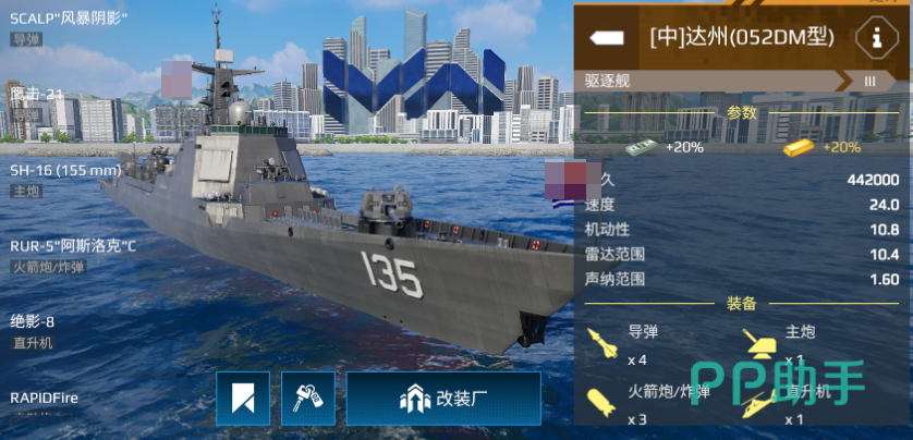 052DM达州舰是《现代战舰》中的一艘多功能驱逐舰,强大的火力、优秀的反潜能力和一定的防空性能,可以在很多场合中发挥作用。而本次这里给大家带来的是现代战舰达州舰搭配推荐,毕竟再好的综合性能,也是需要合适的武器配置才能发挥出作用,下面就分享一些比较平民的武器配置。