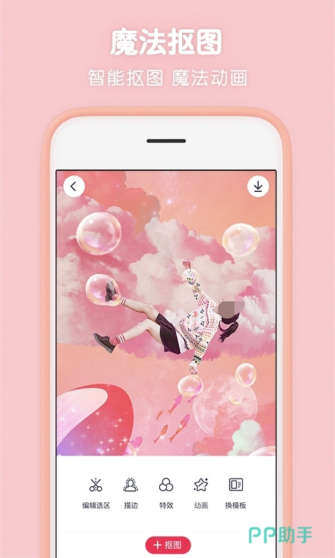 这是一个魔法P图工具,它可以针对照片上的内容进行精细抠图,智能更换背景,还可以在线自拍,体验不同风格的美颜效果,甚至还有百变造型,帮助大家疯狂换脸,各种发型也可以自由选择。