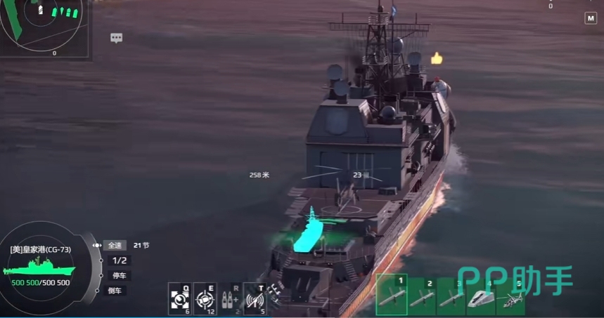 防空可以用海红旗,这个船大家要注意的就是炮,导弹和防空都是比较分散的,所以大家在战斗的时候要注意一下,尽量将有输出武器的地方对着敌人。