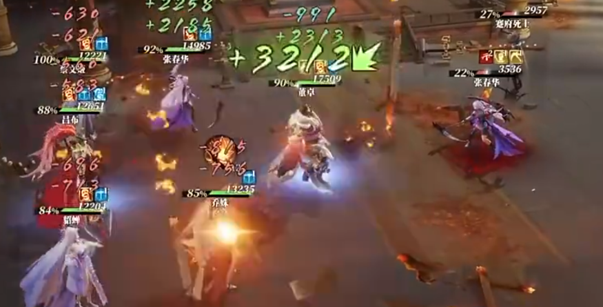 每回合都会有火团从屋顶坠落造成额外伤害,而蹇硕在后排召唤的“死诏”标记更是常规手段无法清除,只能通过回复生命来解除,没有群抬的话己方血线很快就残了,再加上张春华的技能高爆发和死士的自爆机制,很容易造成团灭。