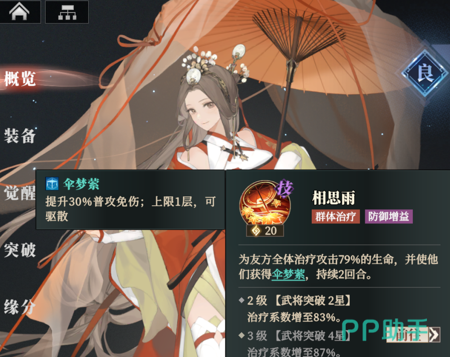 有一个武将可以轻松应对这类机制,那就是“乔姝”,算是对策卡了。她的天赋和绝技可以让队友通过普攻来进行回血,独特的治疗机制恰好克制“死诏”标记的持续压制效果。她的大招还能实现全体群体治疗,直接清除所有“死诏”。更关键的是,屋顶掉落的火团在判定机制上被视作“普攻”,也能触发乔姝的回血能力,因此只要确保乔姝拥有良好的养成基础就能稳住队伍血量。