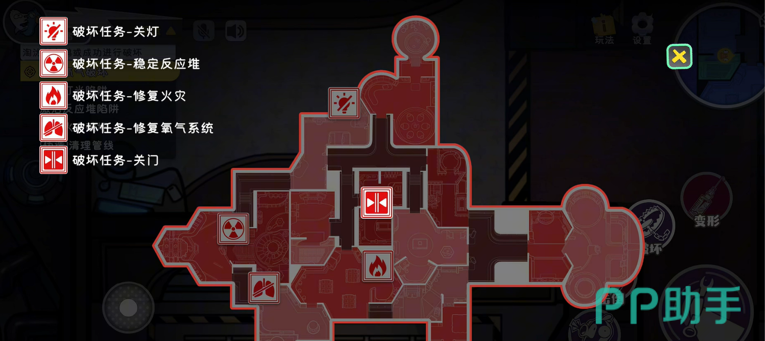 只需要点击破坏技能,就可以选择想要破坏的设施,例如对方的任务是关灯或者修复管道,大家就可以选择破坏灯泡或者管道了。不过在破坏的途中记住不要被其他人发现,不然很容易被发现你的刺客身份,从而在会议中被淘汰出局。