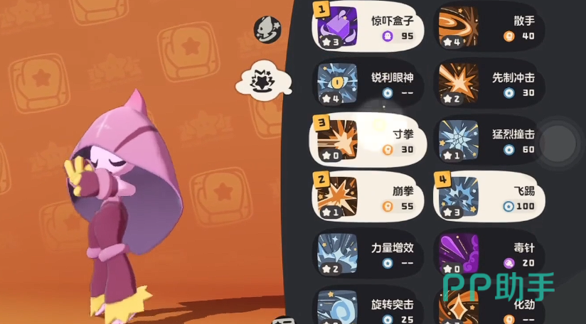 在吃到技能加成以后自身会获得额外40点的威力属性,在下次进行攻击的时候是可以造成40点额外伤害的,这就是它所需要带的第二个技能了。在之后是三技能,这第三个需要带的技能叫做伺机而动。
