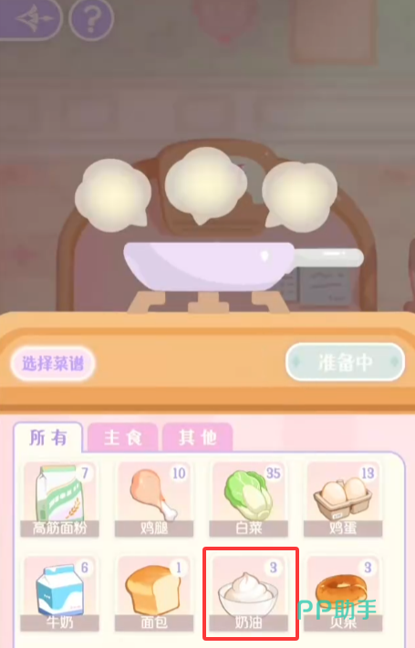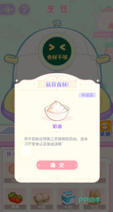 想要制作奶油的话,大家可以先打开游戏中的烹饪功能,之后在页面中就会跳出选择菜谱的选项,这时大家的视角往下拉,就可以在菜谱当中看到奶油。接着点击进去就可以看到制作奶油所需要耗费的食材,如果想要制作其他食品的话,就点击其他菜谱就行。