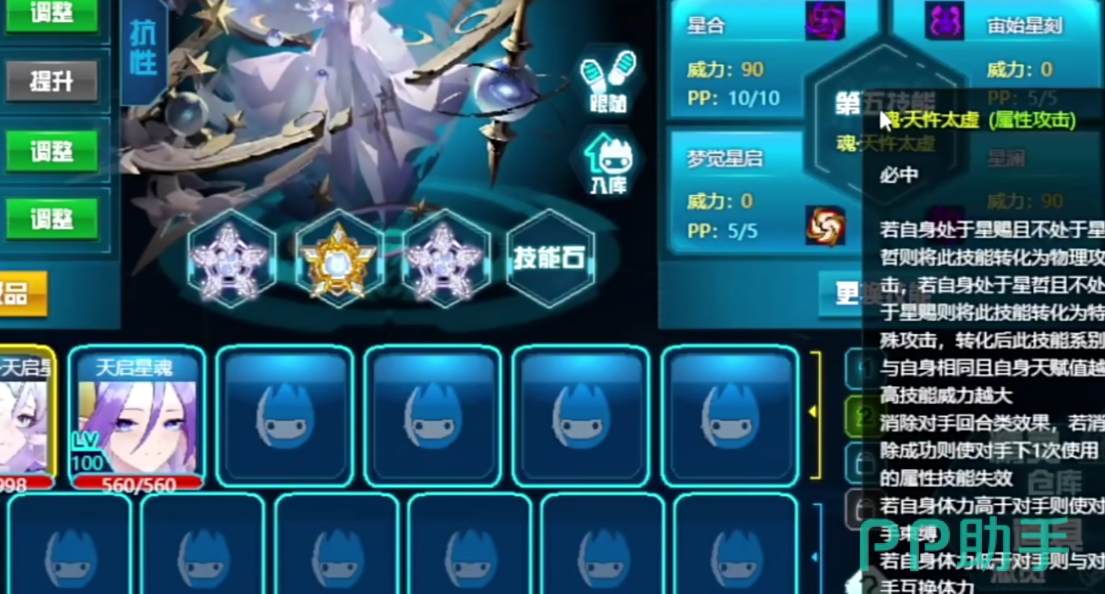 最后一个技能是残星奚落,该技能与四个回合之内,可以反弹并免疫敌方,所释放的异常状态,同时,在三个回合内,每个回合都有70%的概率直接闪避对手的攻击,该技能也属于必中技能。