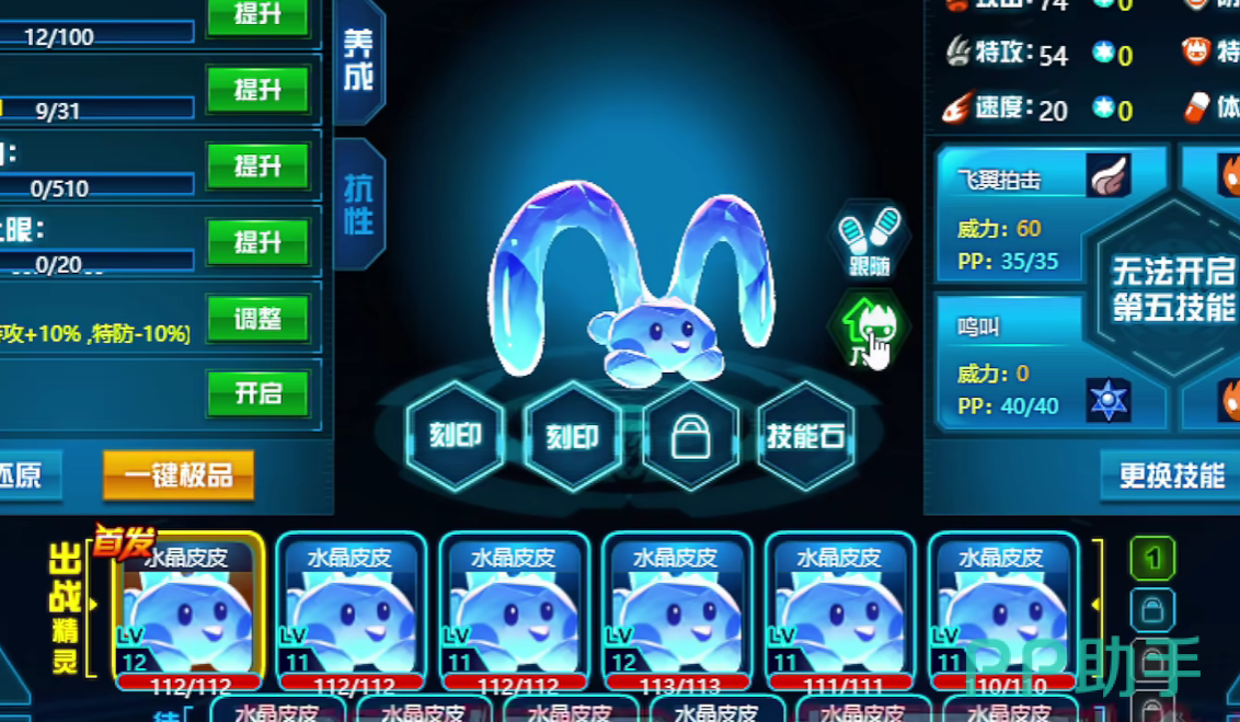 水晶皮皮在游戏当中,总共拥有五个技能。