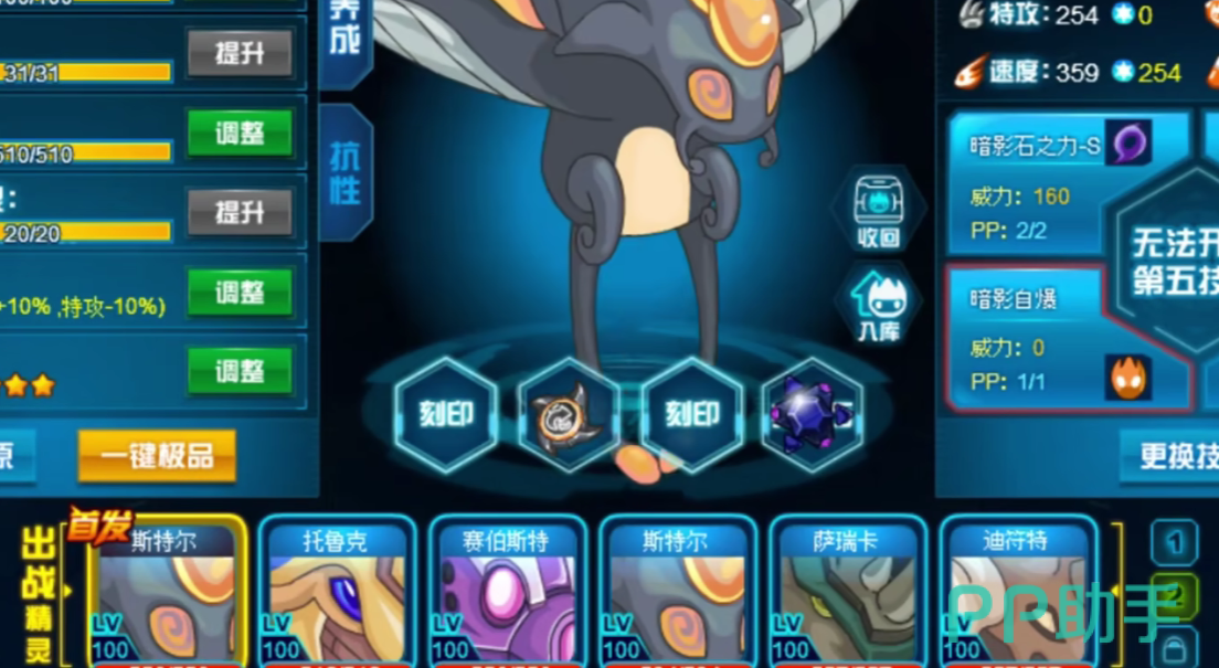 幻影蝶在游戏当中等级为高级,作为超NO精灵,她的属性为暗影。