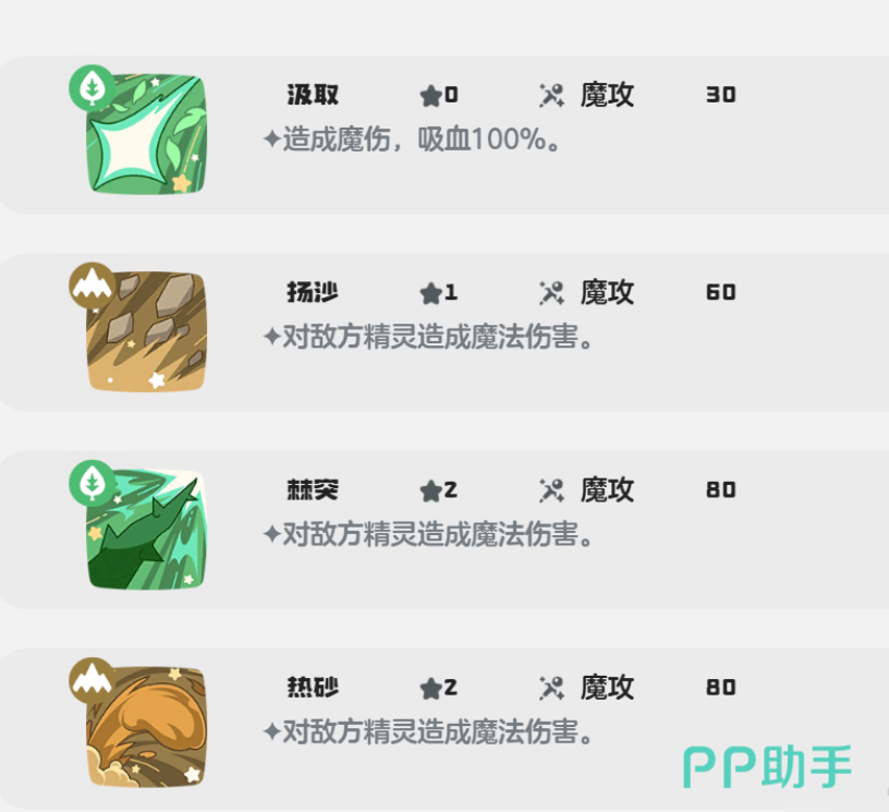 因为九幽菇的特性特点,我们在选择好适合它的性格,在选择技能时就要充分的把多人宿舍这个特性给利用好了,这里给大家推荐2套适合九幽菇的技能搭配,分别时仙人掌刺击+吞噬+岩土暴击+抛石、汲取+扬沙+棘突+热砂,这两套技能第一套是物理输出。利用回复自身能量的特性来战斗,第二套则是魔伤技能。