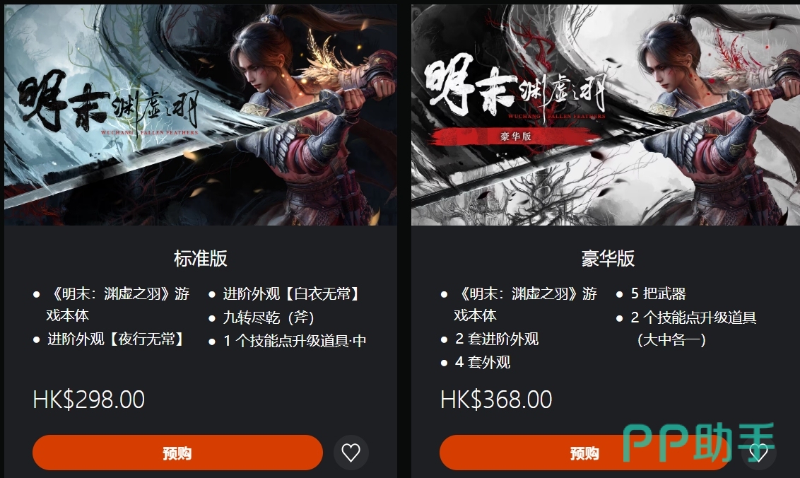 目前明末渊虚之羽已经定档,标准版的价格是298港币,豪华版为368港币。折合算下来,大概275元和340元左右。