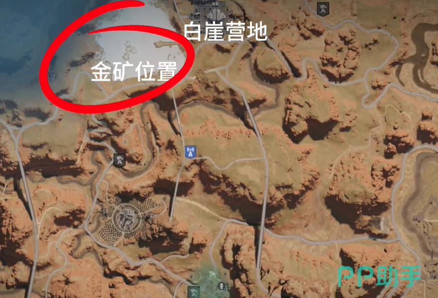 当前版本中,金矿的高密度区域集中于黑原镇西北方向。该区域地图上呈现为一片白色区域,形态接近盐碱地,地貌相对开阔,视野良好。在进入黑原镇后,建议玩家优先启用镇外的传送塔,便于后续反复前往矿区采集。在实际操作中,从传送点出发,沿着西北方向行进至白色地带的边缘,便能看到地面上分布着色泽明亮、泛着金属光泽的金矿石,呈块状或簇状散落。
