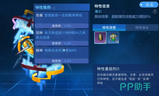 百目邪诅技能效果极为丰富,首先它能消除对手回合类效果,在对战中对手可能会通过回合类效果强化自身、免疫异常或者造成伤害减免等,此技能的消除效果可以瞬间打破对手的优势局面,巫灵血裔技能使用后,攻击伤害是正常状态下的2倍,这在短期内极大地提升了佩洛瑟斯的输出能力,能够在关键时刻给予对手致命一击,为佩洛瑟斯提供了一定的生存保障,在输出的同时不用担心自身血量问题,龙魇厄目技能可以免疫并反弹所有受到的异常状态,这在面对一些擅长施加异常状态干扰的精灵时,有着极大的优势,不仅自身不会陷入异常,还能将异常反弹给对手,打乱对方节奏。