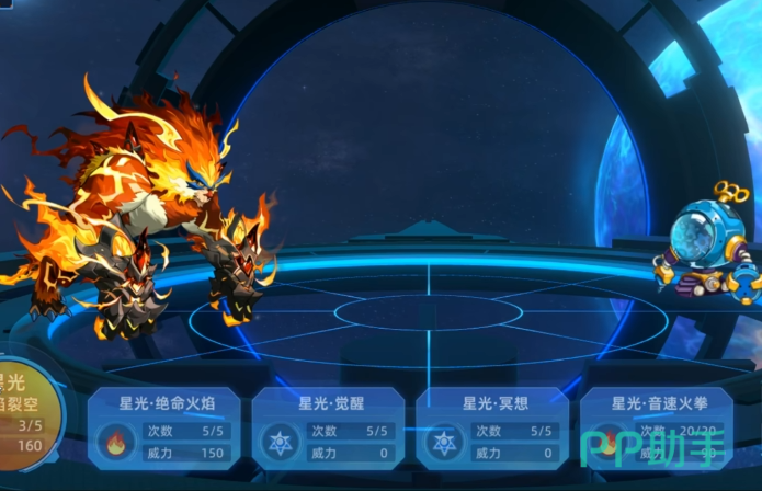 专属特性焰更是为其战斗能力增色不少,每次登场时,若自身为对手天敌则为对手附加3回合的星火之灼,自身每次使用攻击后同样附加3回合的星火之灼,星火之灼效果显著,拥有此状态的精灵体力恢复效果减少100%,每次受到攻击伤害后额外受到伤害值50%的百分比伤害,这一特性让星光魔焰猩猩在面对属性劣势的对手时,能够持续造成额外伤害,干扰对方的续航策略。