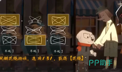 游戏开始之后,玩家会乘坐火车前往朋友所在的小镇,在进入到小镇之后,会分成4个不同的章节,玩家需要分别完成章节里的任务,在第三个章节里,玩家将会来到面包店,在这里可以看到一个穿着绿色裤子戴绿帽子的角色,这个角色就是面包店的老板,玩家可以通过和他玩翻花绳获得这条绳子,只有在第一次翻花绳的时候选择第一个选项,第二次翻花绳的时候选择第三个选项,第三次翻花绳的时候选择第二个选项。