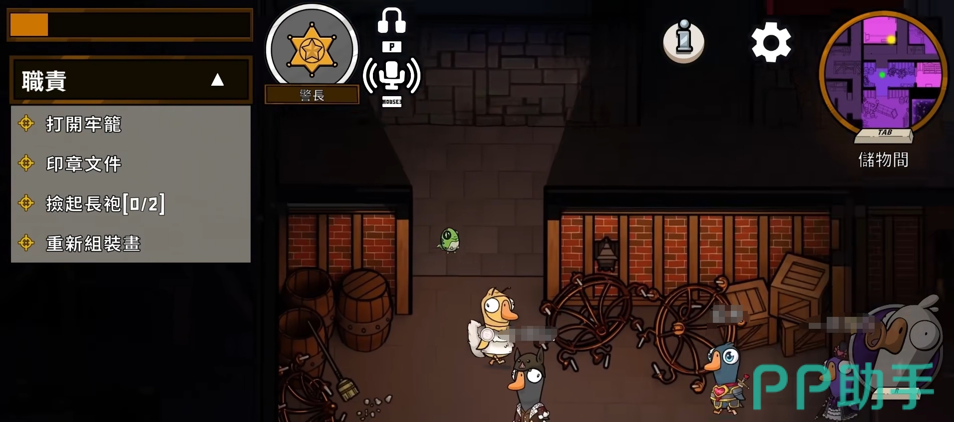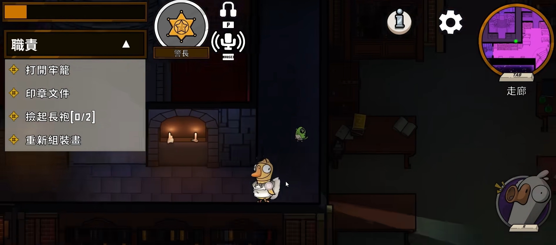 警长在好人阵营里的作用相当关键,在开局时尽量与别的玩家保持一到两个身位的距离,且不要立刻暴露自己的身份,防止被鸭子阵营给刀了。但也不要离他人太远,尽可能确保有目击者来帮自己证明清白防止被票,同时还要多拿一些场上的信息。当然,如果有鸭子阵营的玩家当着自己面刀人,那就不要客气,赶紧冲上去刀他。