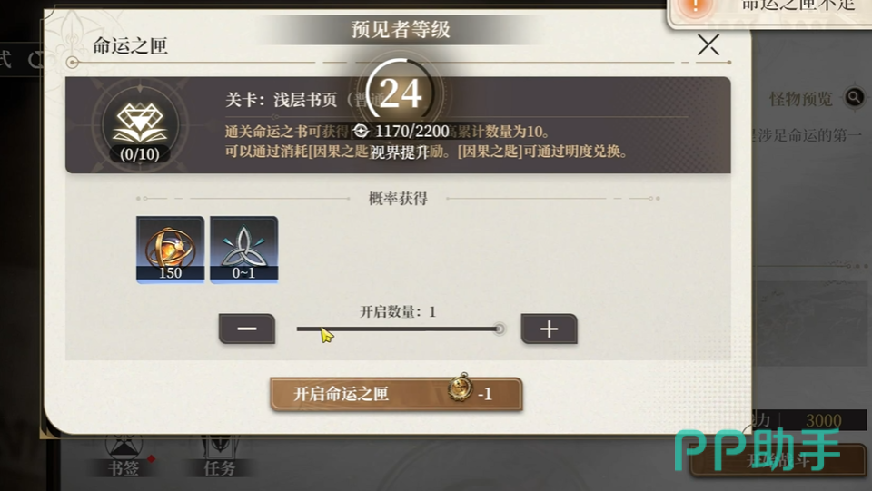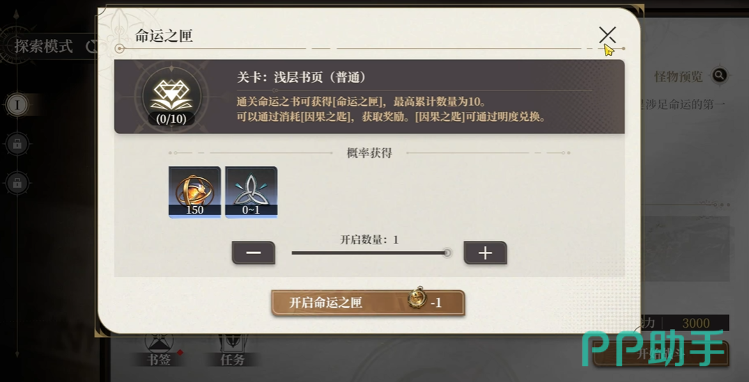命运之书提供“简单”与“困难”两种难度。简单难度主要掉落1孔低级古痕,适合用于快速累计货币资源。困难难度则可掉落3孔低级古痕与更高概率的资源收益,更适合追求属性提升与构筑效率的中后期玩家。所获得的货币用于商店兑换10孔古痕,是提升角色战斗力的重要手段。