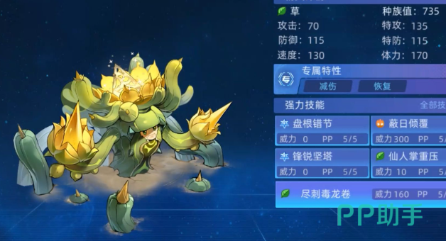 丰瑞尖塔是一个极为关键的属性技能,效果丰富且强大,首先它必中且能全属性加一,当自身当前体力高于对手时,强化效果翻倍,这意味着在对战中,若能在开场或前期保持血量优势,使用此技能后,参天巨型仙人掌将迅速获得全方位的属性提升,大大增强自身实力,毒龙卷作为攻击技能,同样具有重要作用,它必中且能消除对手回合类效果,一旦消除成功,则下三次攻击附加200点固定伤害,在对战中,面对那些依赖回合类效果强化自身或限制己方的精灵,毒龙卷能够及时打断对方节奏,并且为后续的攻击附加高额固定伤害,增加输出能力,此外,攻击对手时若对手处于中毒状态则百分之八十使对手感染,进一步扩大了对中毒状态对手的控制和干扰效果。