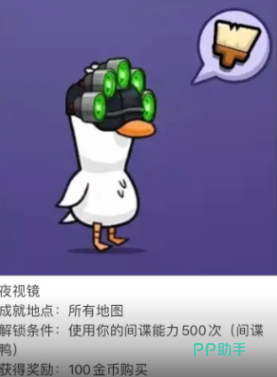 夜视镜:这就是一个比较独特的装扮,在各种地图下都可以使用,解锁它所需要做的就是熟练的使用500次的间谍能力。当玩家成功积累500次之后,花费100个金币就可以获得这一个炫酷的夜视镜。