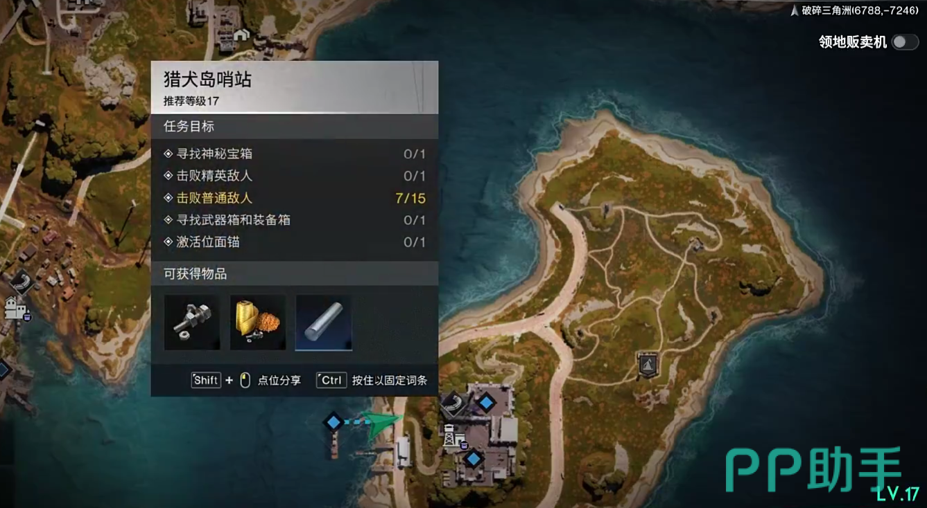 猎犬岛神秘的宝藏,主要分布于猎犬岛哨塔附近的宝箱,玩家在前往猎犬岛后,需要打开地图,切换到右下角的猎犬岛哨塔坐标,在抵达后,一路往东面行动,就可以抵达哨塔的路口了,在哨塔路口内,玩家需要击败一名精英敌人。