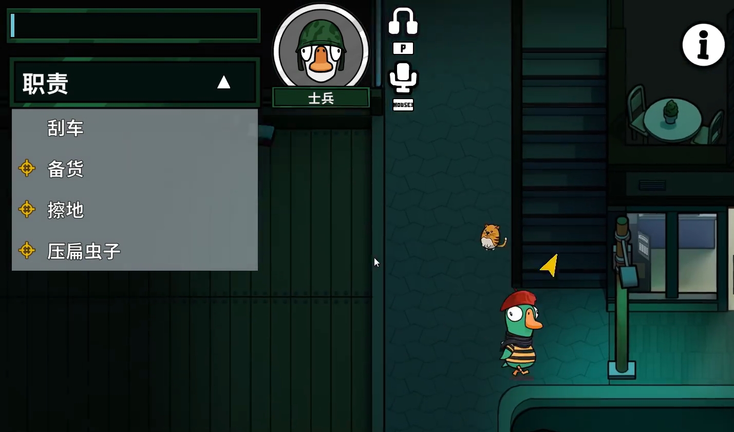 士兵在入场后,需要累计完成一定次数任务,才能获得刀人的机会。这也意味着士兵开局的首要目标是做任务和保全自己,等自己带刀后再去找鸭阵营的玩家对抗。四次任务并不要求在同一回合内完成,当前回合所完成的任务数会累积到下一回合,且需要做两次的任务会算作完成两次任务次数,因而快的话第一回合就能带刀。