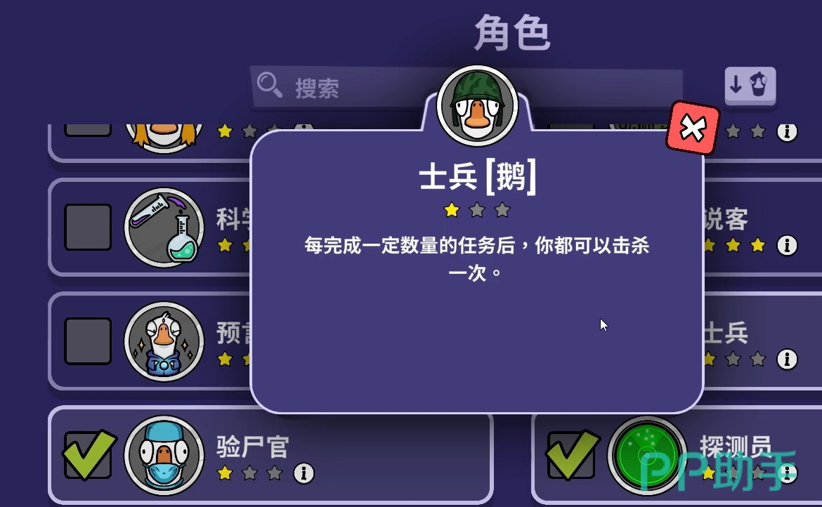 以上就是鹅鸭杀手游士兵怎么玩的介绍。士兵的特点就是需要完成一定数量的任务才能带刀,在前期并没有太突出的能力,后期会比较强势,可玩性和趣味性还是挺高的,各位可去试试这个职业。
