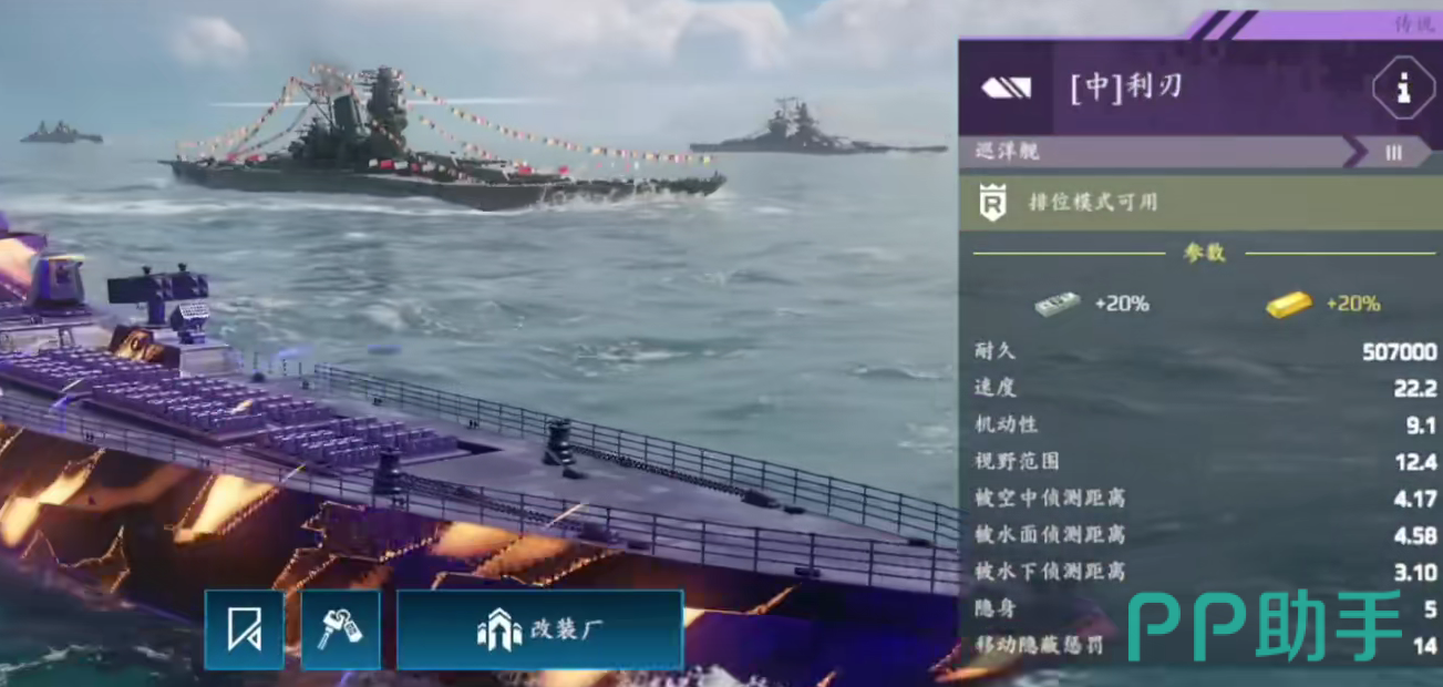 利刃巡洋舰整体体积比较小,很难被敌人命中,火力输出也是不俗,但由于它的弹药装填时间比较长,主炮和副炮同时输出时,可能会出现输出偏移的状况,所以非常考验玩家的操作水平。