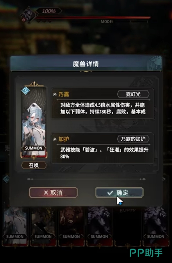 魔兽的养成同样可通过强化功能进行,在养成界面找到魔兽伙伴一栏后,就能对魔兽进行编队和提升魔兽的等级,等级越高魔兽所造成的伤害越高,这也令魔兽也成为了玩家在养成时需要格外注意的重点。魔兽栏位会随着人们的等级提升而逐步解锁,最多可以将五只魔兽编入队伍。