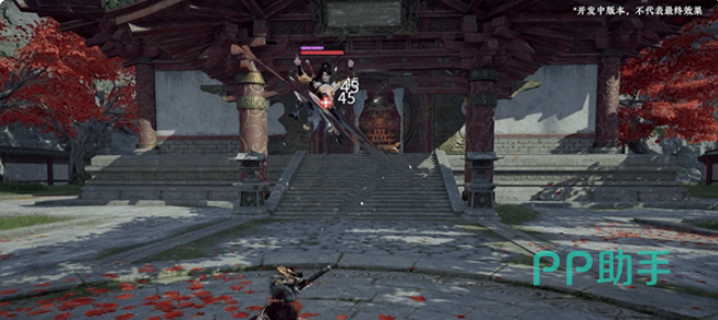 八字斩后的追击招式叫做”点刺”,蓄力后对敌人进行点刺的攻击。在蓄力的招式使用后,或者在电磁后的闪避会将招式更改为”曲步”,此时可以最快的速度绕到敌人的侧面进行攻击,给对手出其不意的一击。曲步后的追击为蓝霸体招式为”斜返斩”。