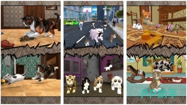 此游戏以立体生动的3D画风展示,在场景构筑方面,不仅有房屋内的精彩各个角落场景,同时还有温馨花园城市街道等,各位小猫玩家可以尽情展开探索,挑战各种有趣任务,搜寻隐藏的各种秘密。《真实小猫3D模拟》内的小猫也是极致拟真的建模,同时在各种动作行为的展示方面,也非常拟真的向大家模拟了猫咪的真实情况喔。