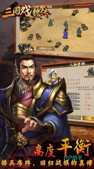 这是一款以三国时期魏国视角展开的策略战棋手游,玩家将化身曹操,从黄巾之乱到统一天下,体验魏国崛起的完整历程。游戏以历史事件为脉络,融入空城计、赤壁之战等经典战役,并还原了鱼鳞阵、鹤翼阵等真实阵法,策略性贯穿始终。围绕资源经营、武将养成与战场博弈展开,玩家需通过科技研发提升兵种战力,利用地形优势部署战术玩家可自由搭配阵容,打造全能型武将或专精型部队。